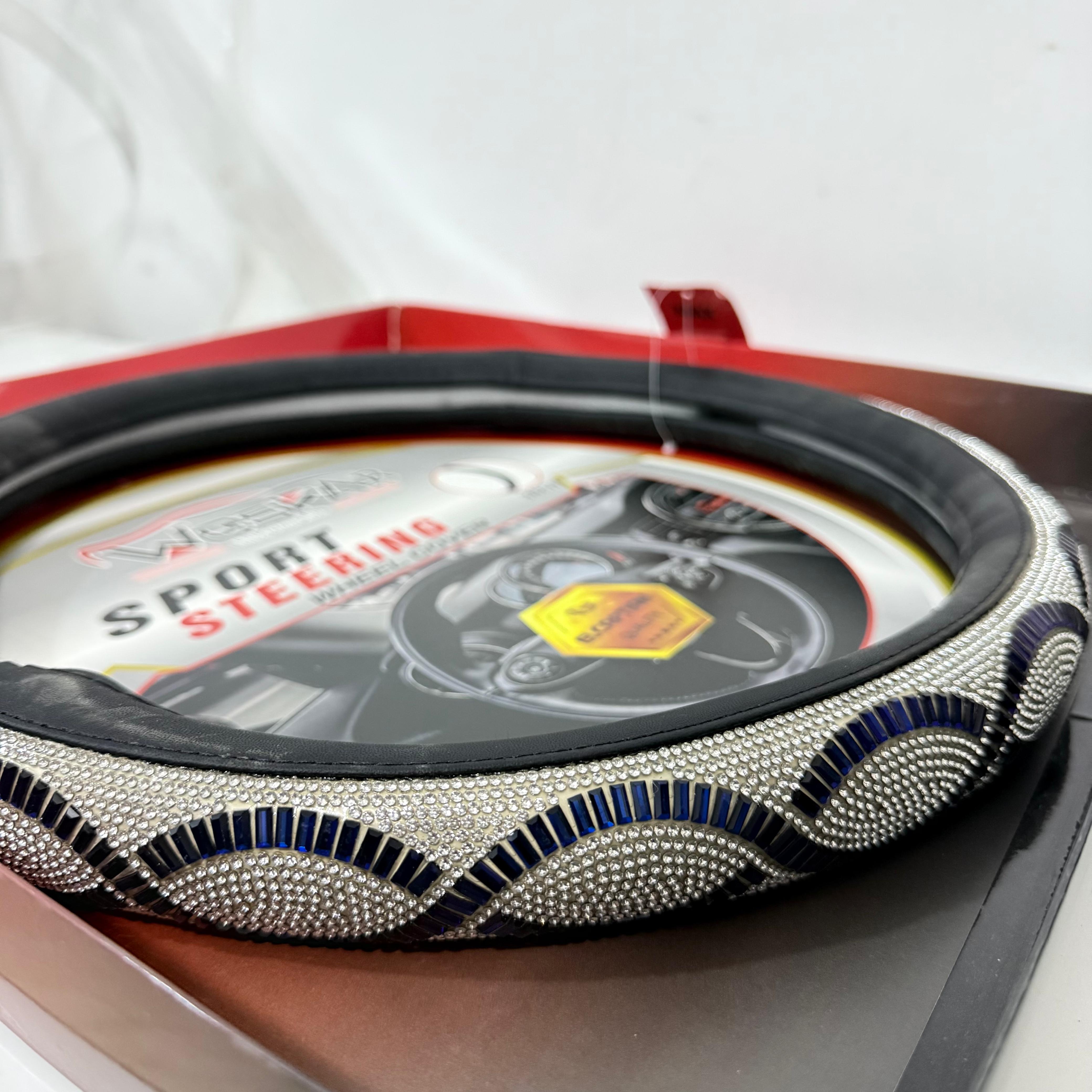 غطاء فخم مزين بحبيبات سترس لامعة تضيف لمسة أنيقة وجذابة لمقود السيارة.